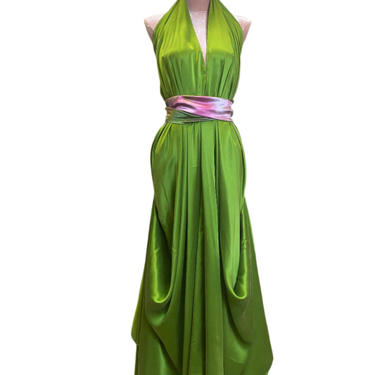 Goddess Dress, Emerald Green Halterneck Silk Dress